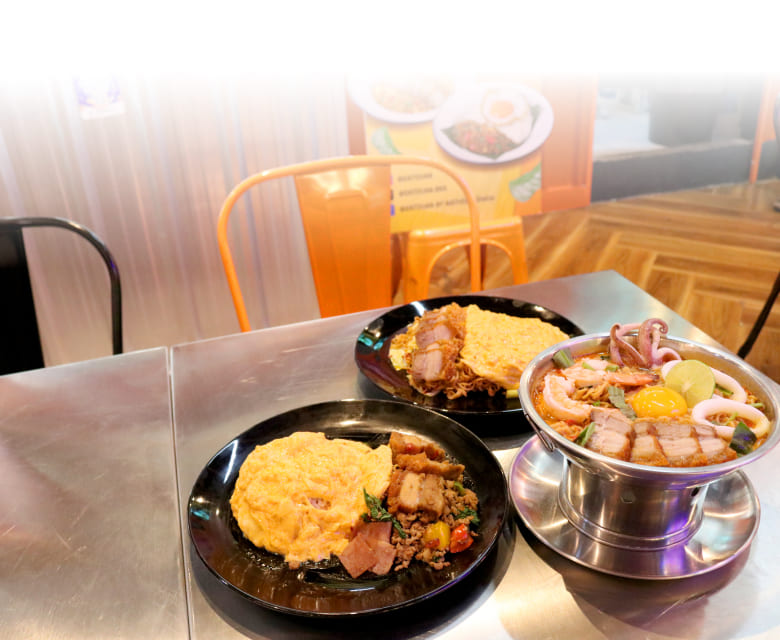 ร้านอาหารสตรีทฟู้ดไทยที่รสชาติถึงเครื่อง และใช้วัตถุดิบพรีเมี่ยมที่คัดสรรมาอย่างดี ขอนำเสนอเมนูที่ทั้งรวดเร็ว อร่อย เมนูที่ห้ามพลาด คือ มาม่าต้มยำรวมมิตรหม้อไฟ มาม่าผัดต้มยำไข่ข้นหมูกรอบ ข้าวไข่ข้นกะเพราหมูทรีโอ้ รสชาติเข้มข้นจัดจ้านสไตล์ไทยแท้ เครื่องแน่นจัด รับประกันความอร่อยที่ใครได้ลองก็ต้องติดใจ